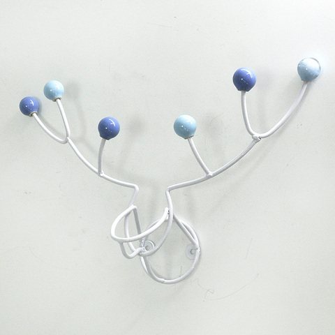 青と白の壁に取り付けられたトナカイのデザイン6コートフック